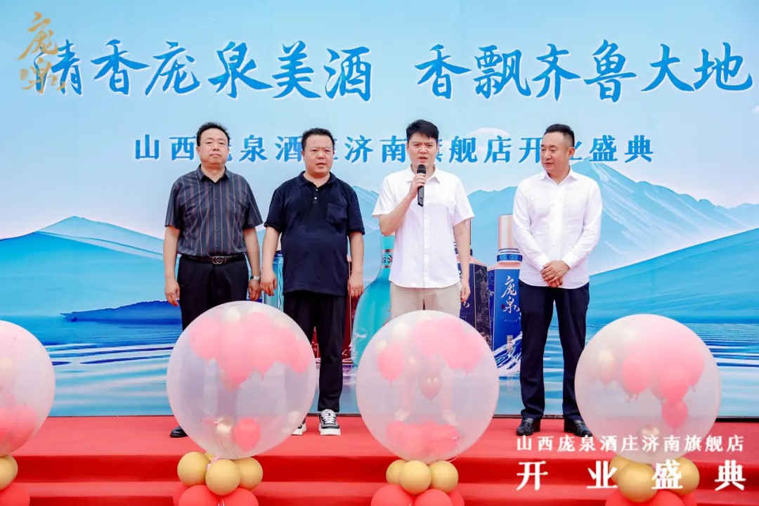 开业盛典瑞气盈门,一众嘉宾的莅临更为整个活动增光添彩!李总率先讲述了与曹刚董事长因游戏结缘进而被庞泉酒庄吸引并投身庞泉事业的历程,并介绍了庞泉酒在济南市场的发展情况及取得的成绩。“2024年,随着山东运营中心的设立,实现了市场多方面优化,销售额已然突破 200 万元。”李总表示,未来计划在济南开设更多旗舰店,坚信庞泉酒定能成为齐鲁大地上的璀璨明珠。