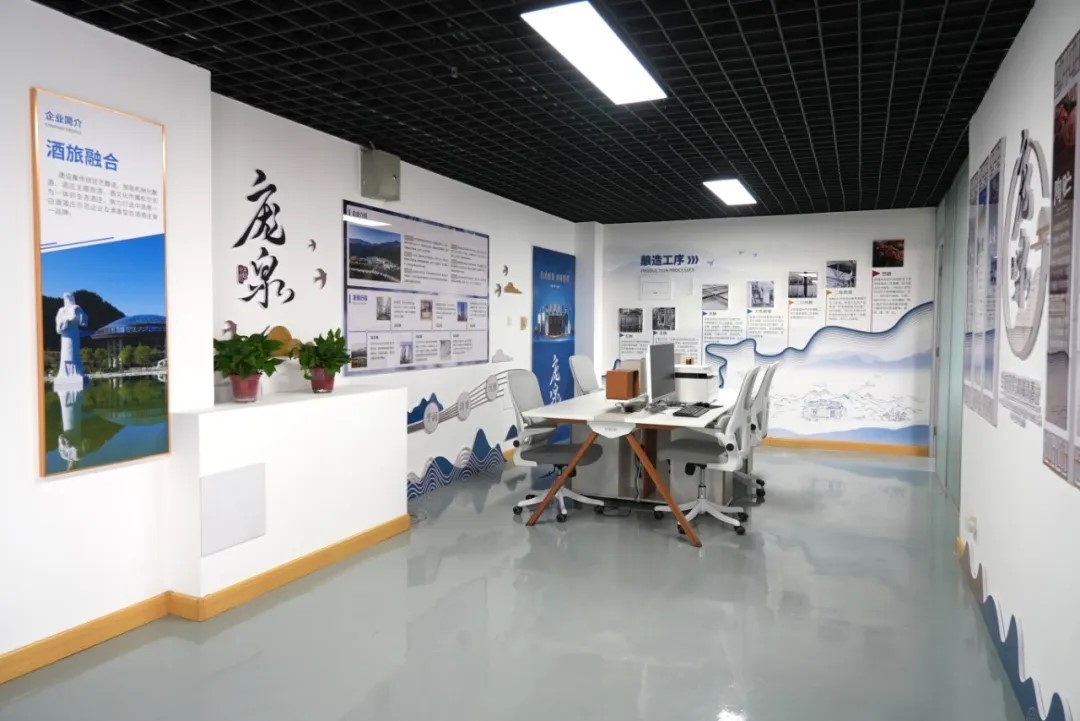 品牌墙上明星产品酒庄酒的大幅瓶模犹如点睛之笔吸引了全场关注,十六净酿造工艺分列两旁,体现了庞泉酒工艺至净的风格特色。